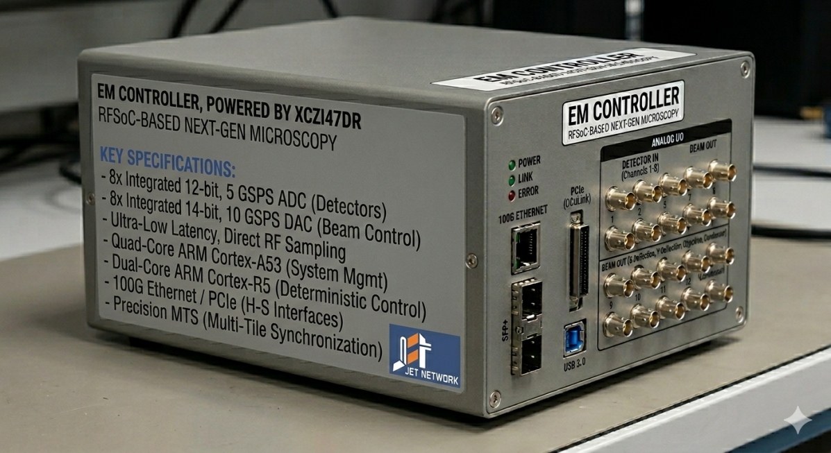 直接採樣技術:利用晶片內建的 8 通道 5 GSPS ADC 與 10 GSPS DAC,取代外部離散元件,實現電子束的次奈米級精密控制與千兆像素/秒的超高速訊號擷取。